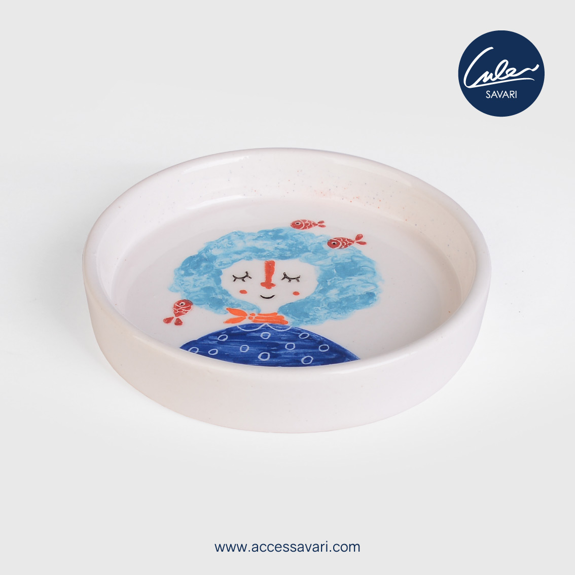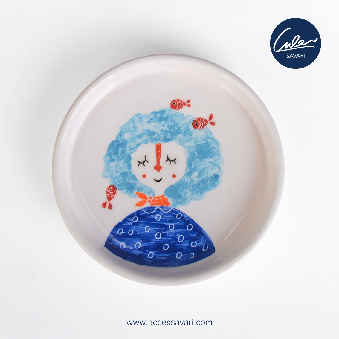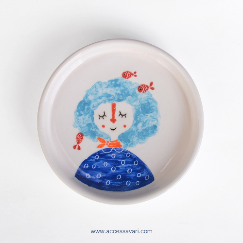 بشقاب سرامیکی نقاشی شده دختر و ماهی