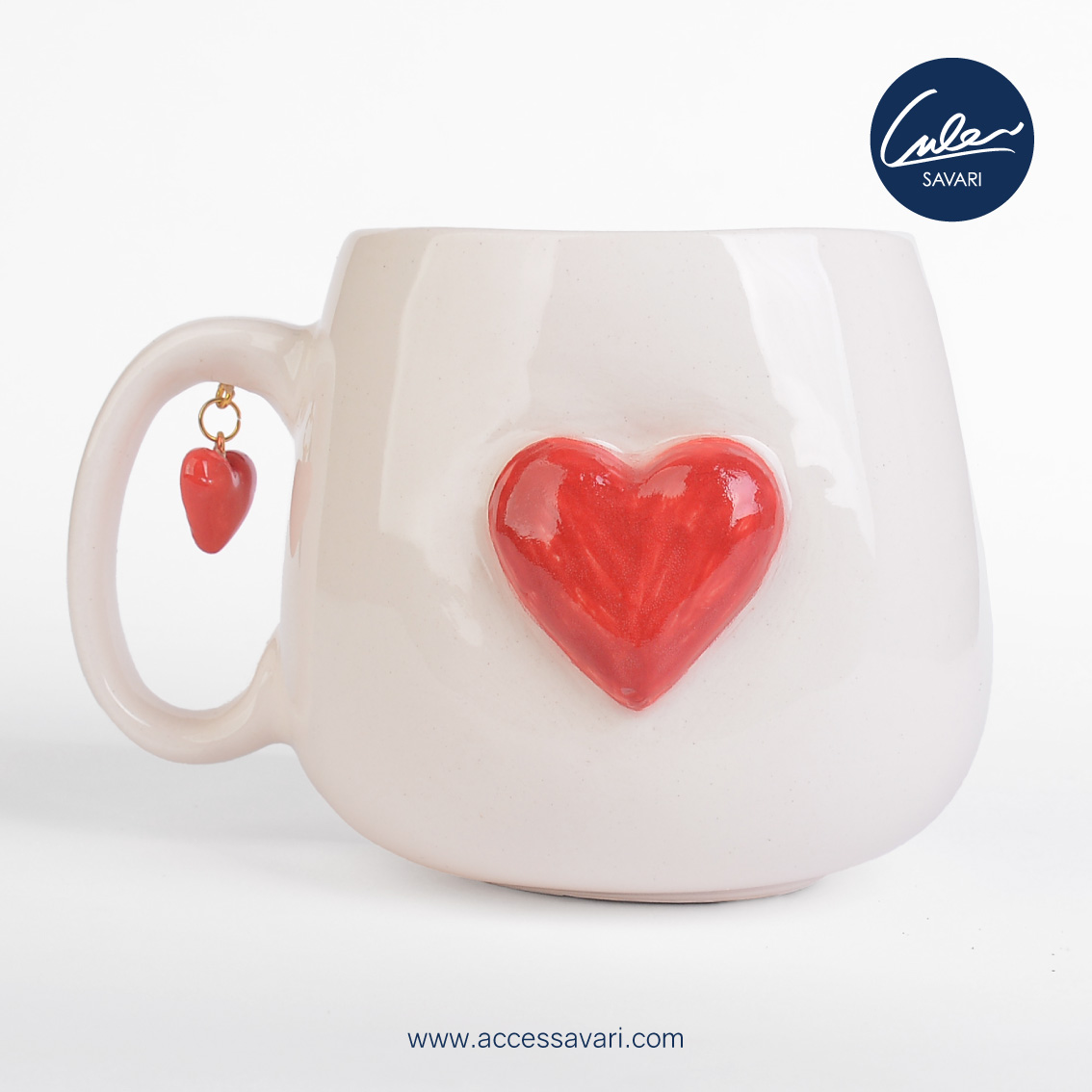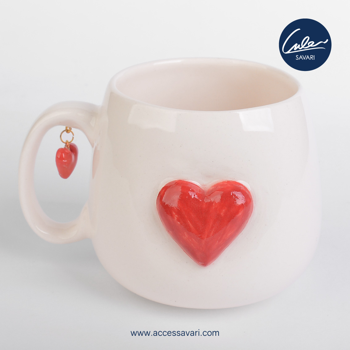 ماگ دست ساز قلبی با آویز قلب