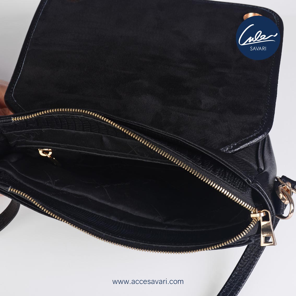 کیف دوشی زنانه چرم طبیعی روکو مشکی