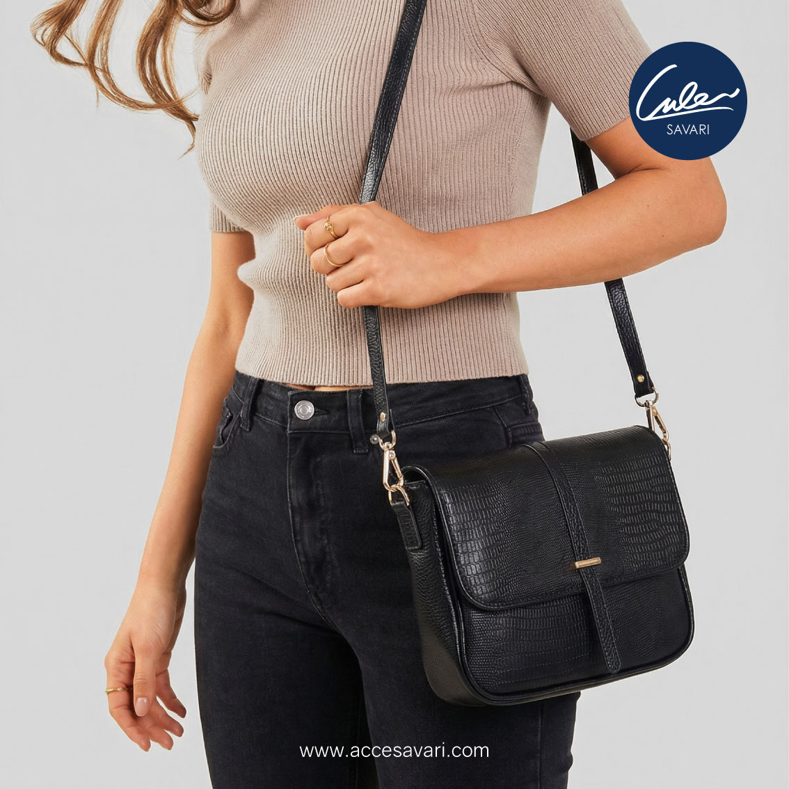کیف دوشی زنانه چرم طبیعی کروکو یک کیف دوشی با دوام و طبیعی و در عین حال سبک و جادار است که لوازم جانبی مختلفی همچون لوازم آرایش، گوشی موبایل، سوئیچ و کلید، دفترچه یادداشت و موارد مشابه را در خود جای می دهد.