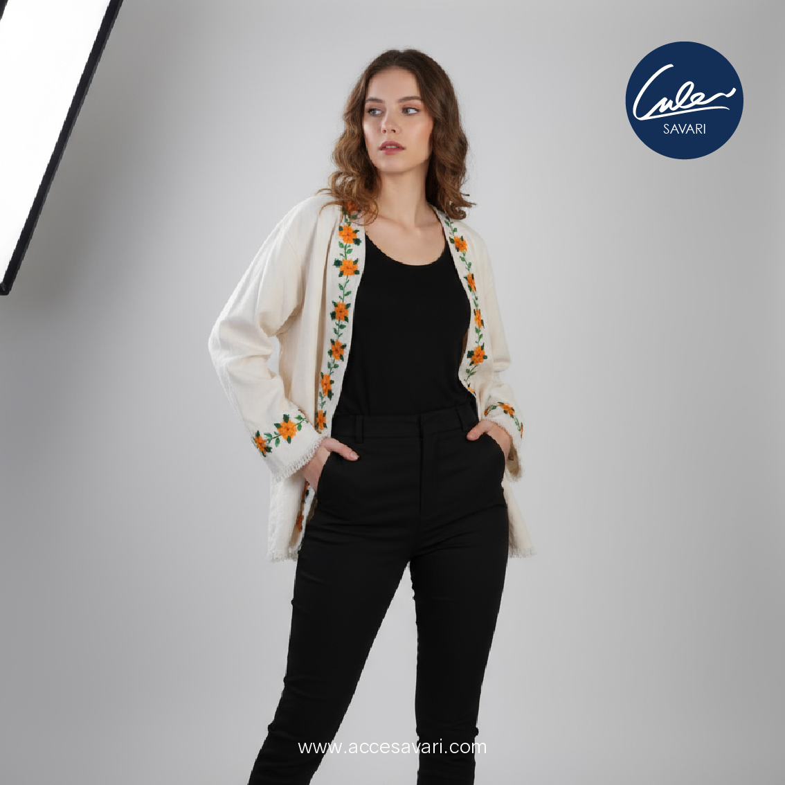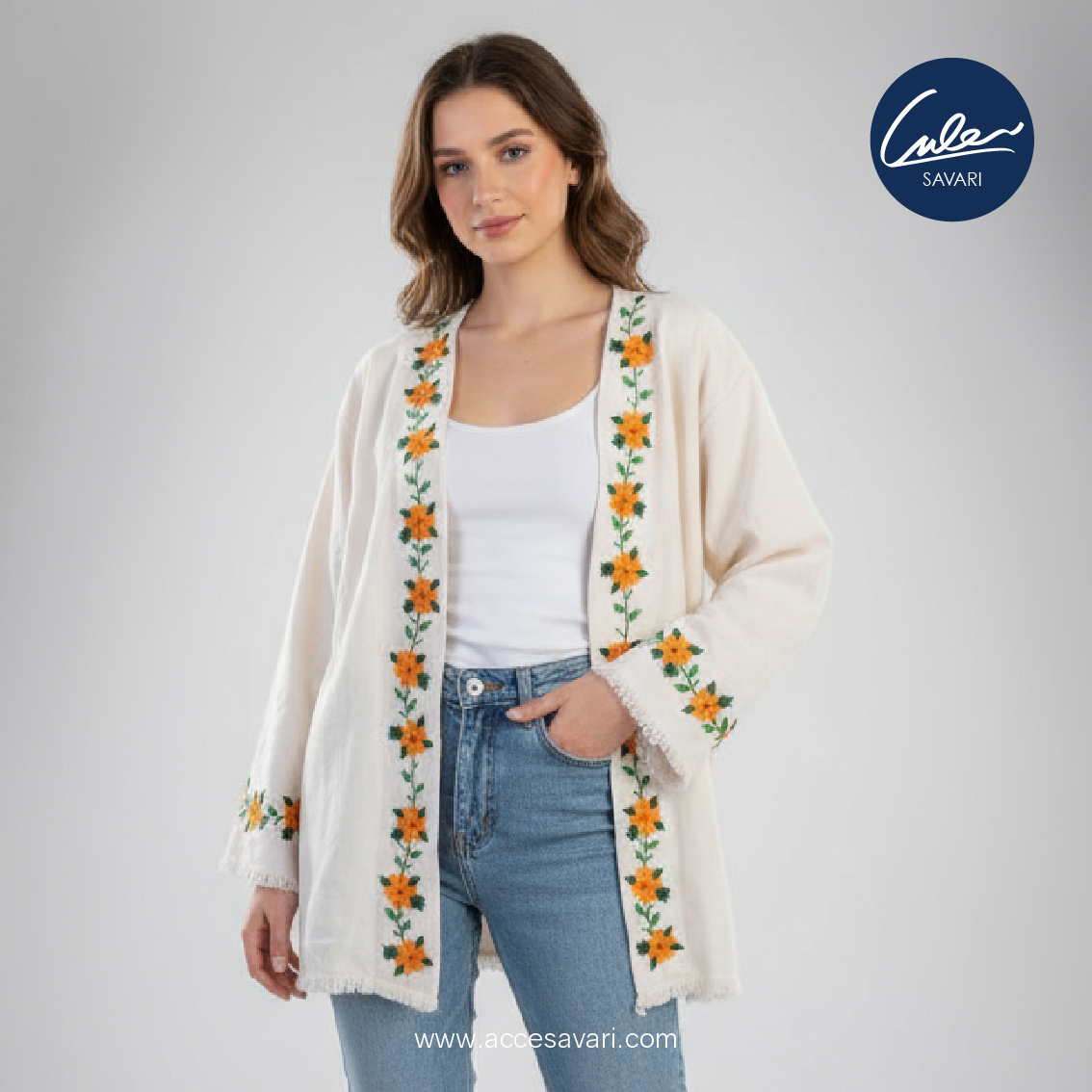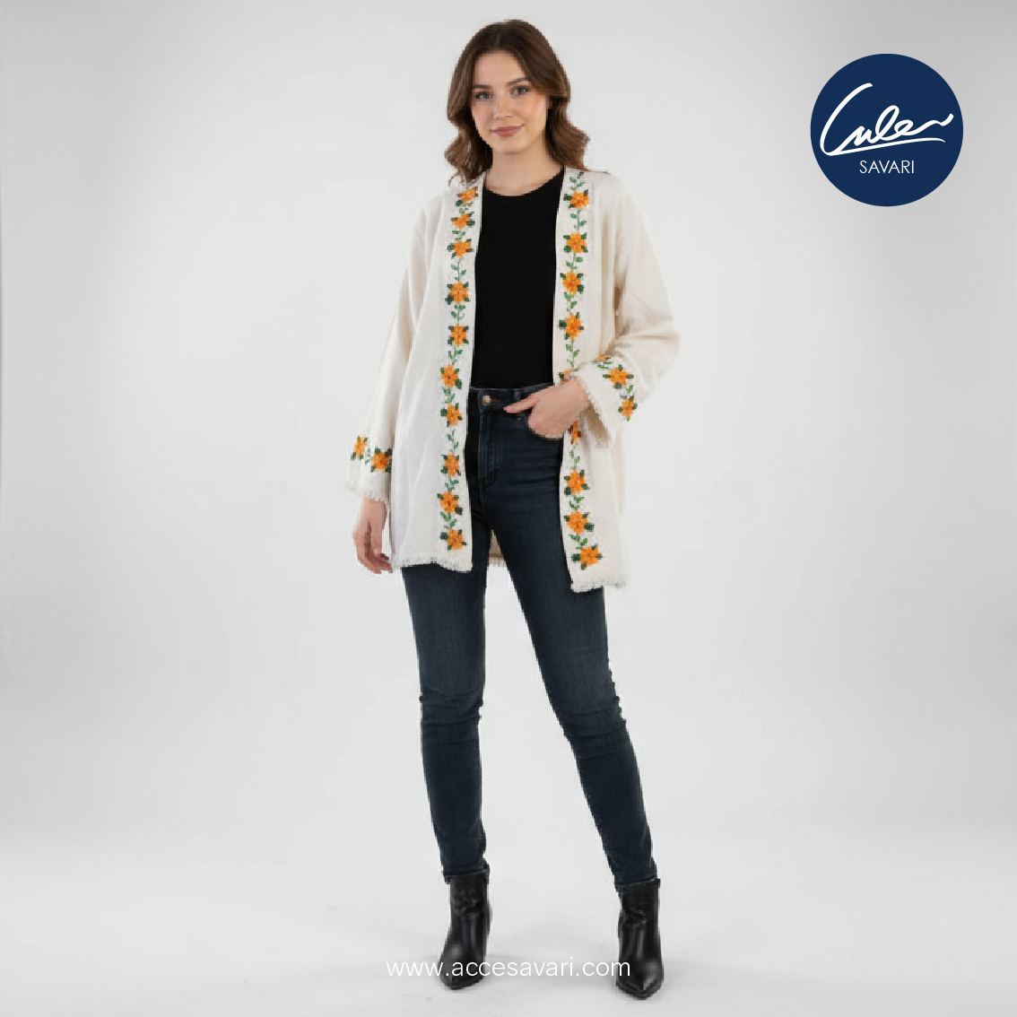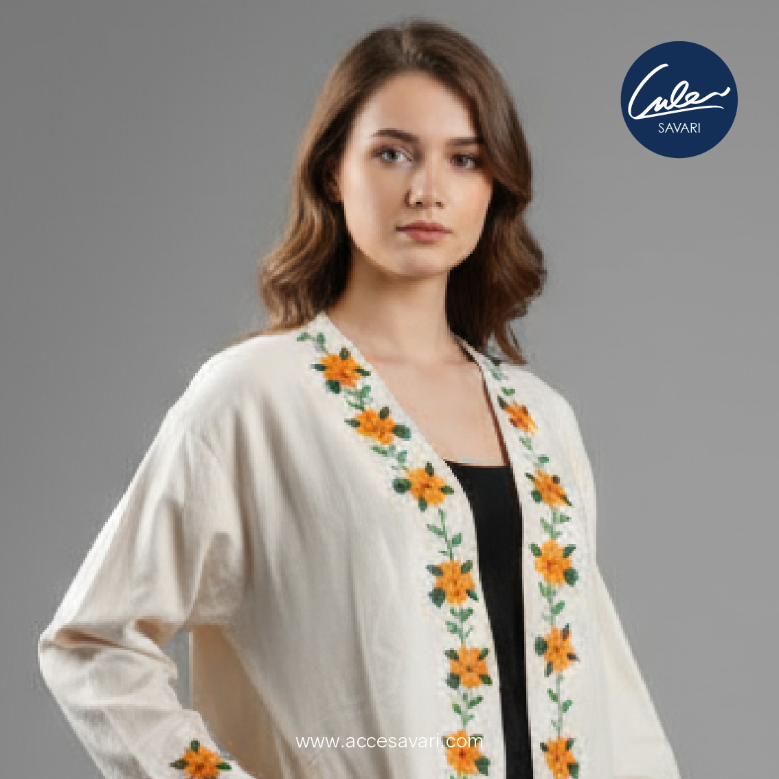 کت بلند تمام نخ طبیعی گلدوزی شده با دست