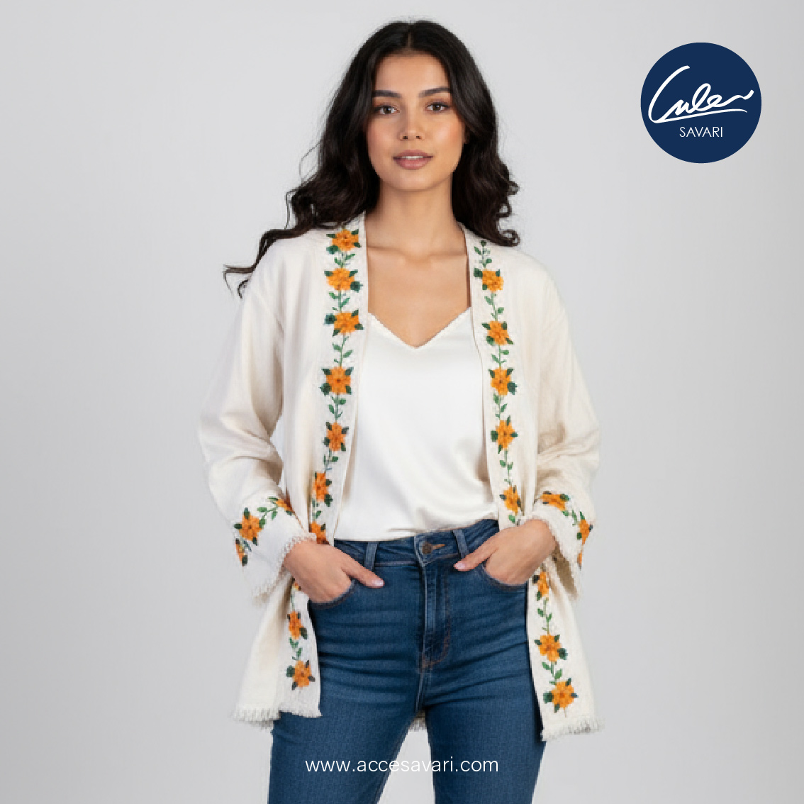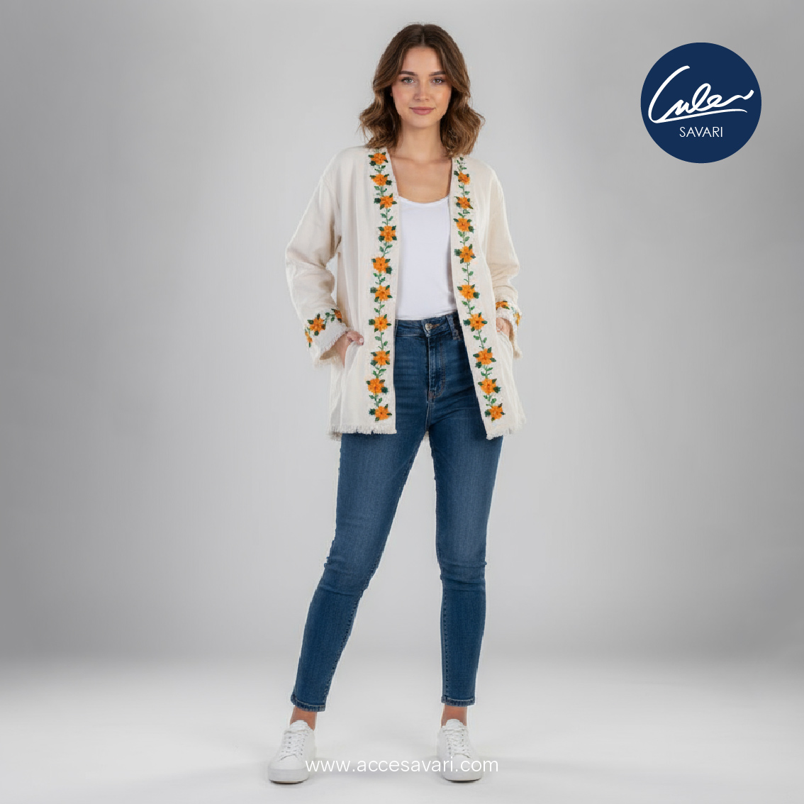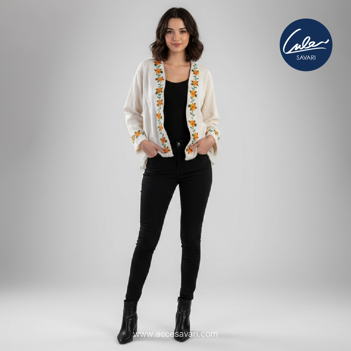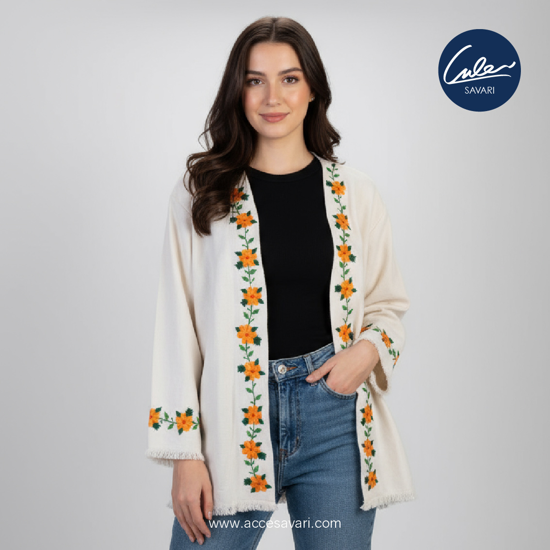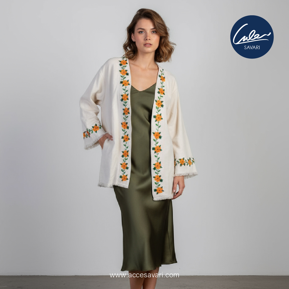 کت بلند تمام نخ طبیعی گلدوزی شده با دست