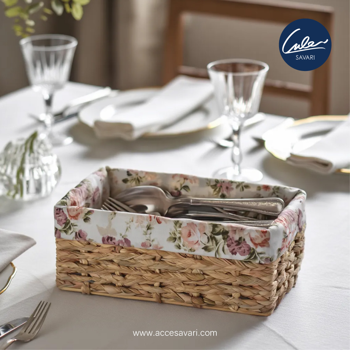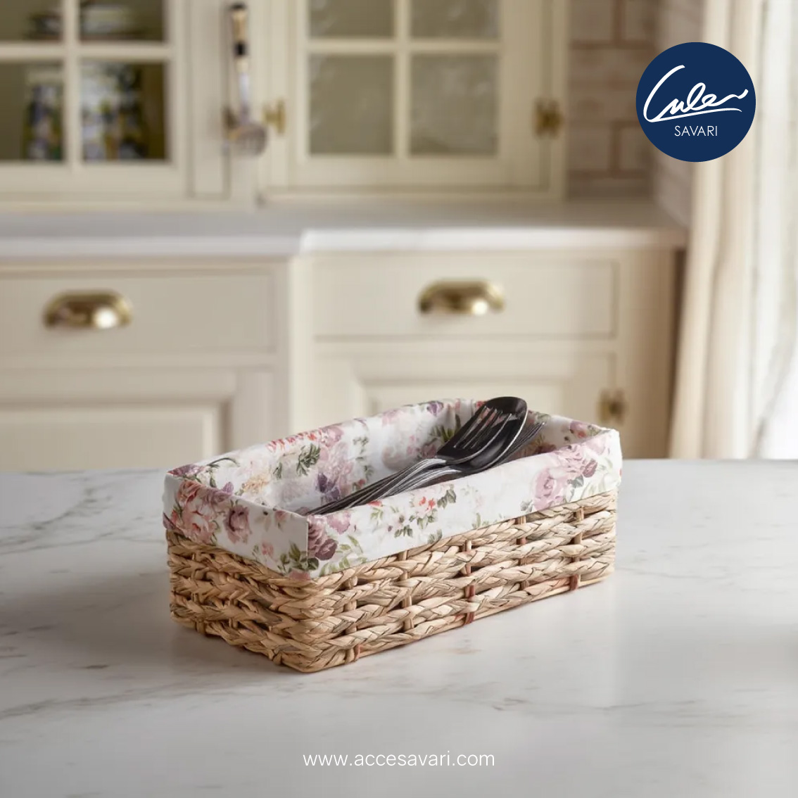 سبد قاشق و چنگال حصیری دستباف انگلیش هوم
